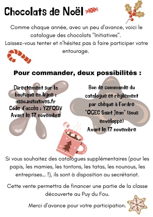 Profitez des prochains jours pour commander vos chocolats en prévision des fêtes de fin d'année.